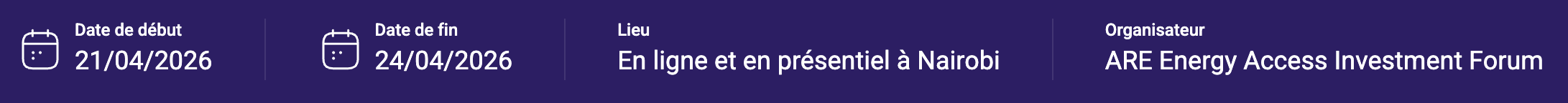 L’Energie Access Investment Forum revient en 2026… et pose ses valises au Kenya ! Du 21 au 24 avril, plus de 1 000 acteurs de l’accès à l’énergie propre vont se rencontrer à Nairobi pour partager, investir et innover. Prêts à bloquer la date ?